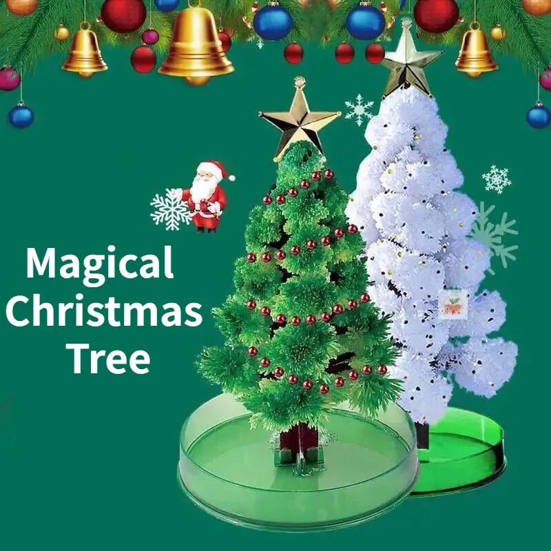 Magic growing Christmas tree kit grows from a paper tree to a beautiful Christmas tree through physical reaction. It only takes hours to allow children to experience and learn the experimental course of crystallization reaction.